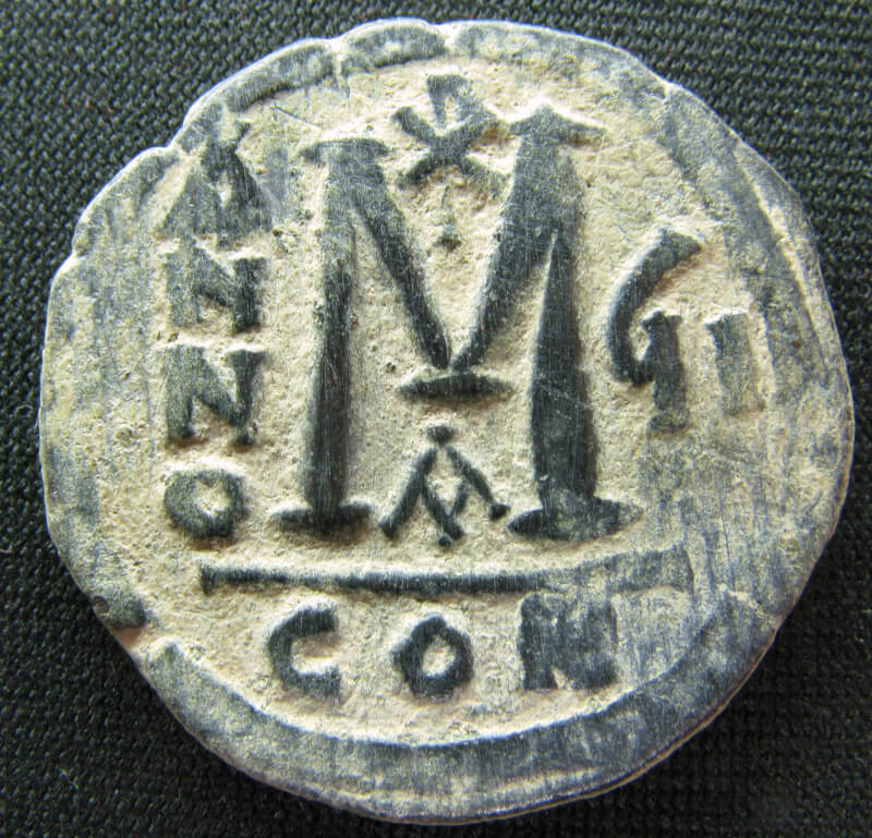 R/ Large M ; croix au-dessus, ANNO à gauche, date à droite (ϛII = 8) ; A au-dessous, CON à l’exergue.