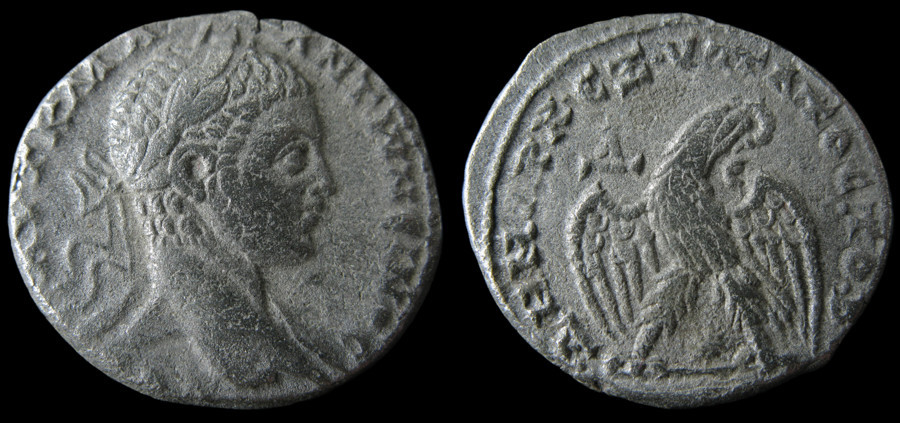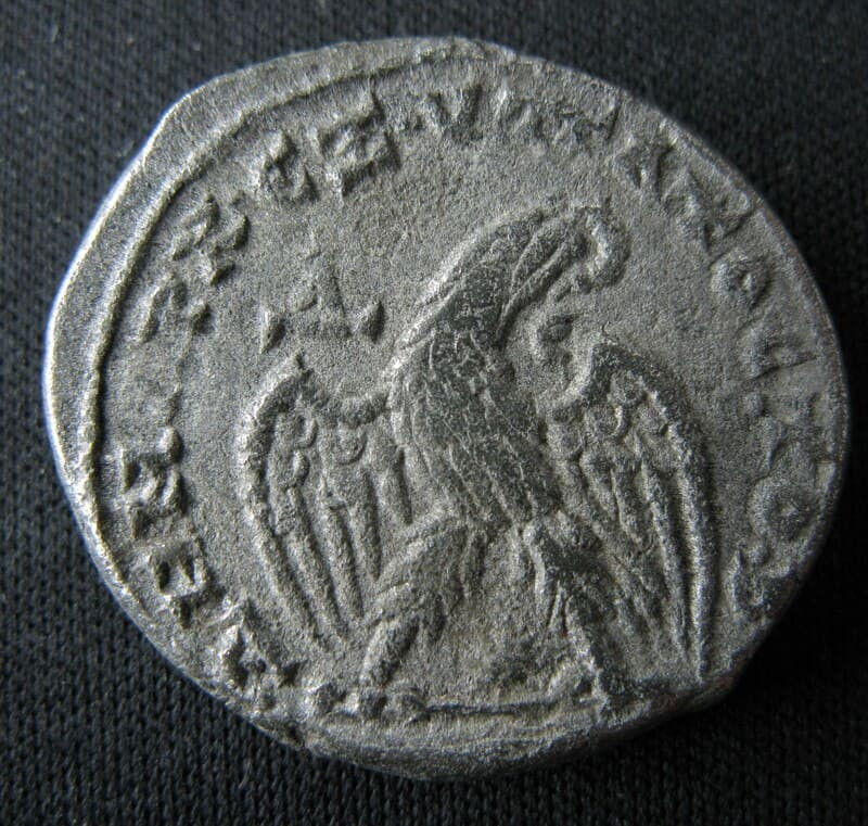Frappé à Antioche entre 218 et 220, ce tétradrachme appartient à l’une des grandes séries orientales du règne d’Élagabal. Les légendes grecques, caractéristiques des émissions syro-phéniciennes, annoncent ici sa puissance tribunitienne et son second consulat. L’aigle lauré, symbole majeur de l’autorité impériale en Orient, donne toute son identité à cette iconographie.