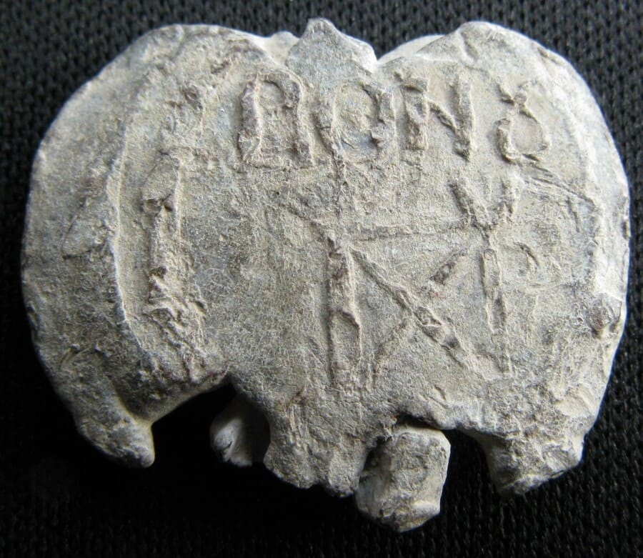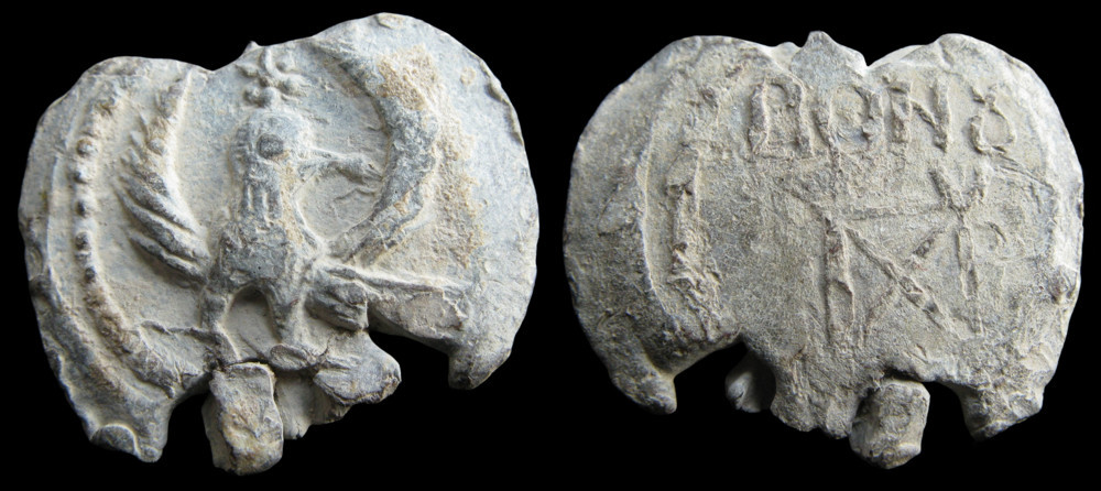 En dessous, monogramme en bloc construit sur un Π avec Χ à l'intérieur ; Υ au-dessus de la jambe droite et et Ρ accolé à celle-ci ;