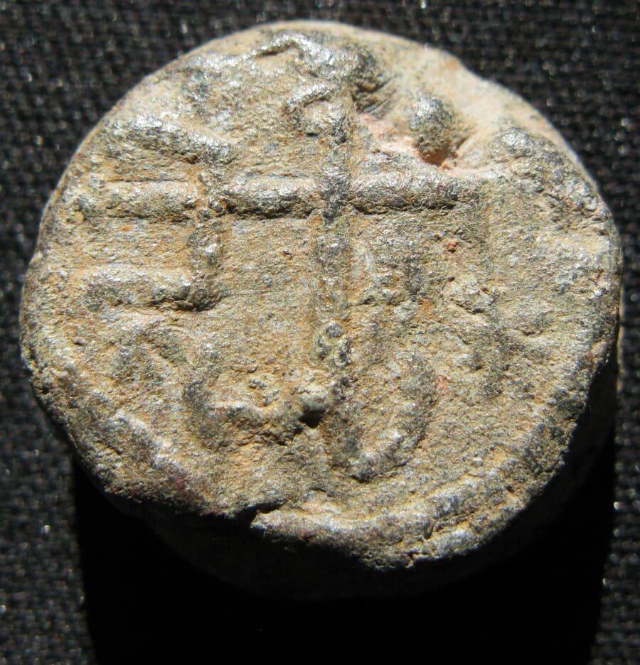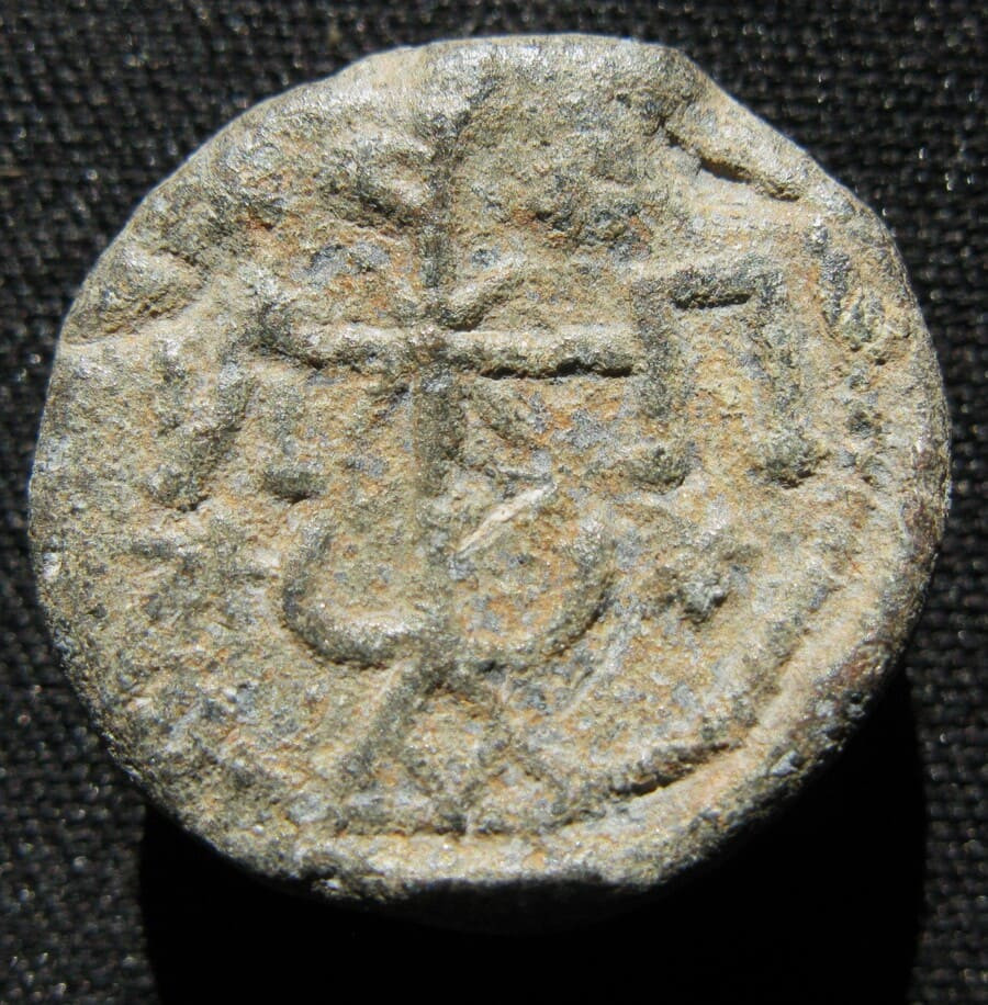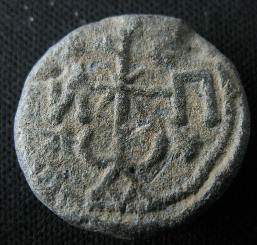 R/ Dans un cercle de feuillage, monogramme cruciforme ; étoiles dans les quartiers. Lettres lisibles : α, ε, ο, π, ρ, υ, χ, ω,