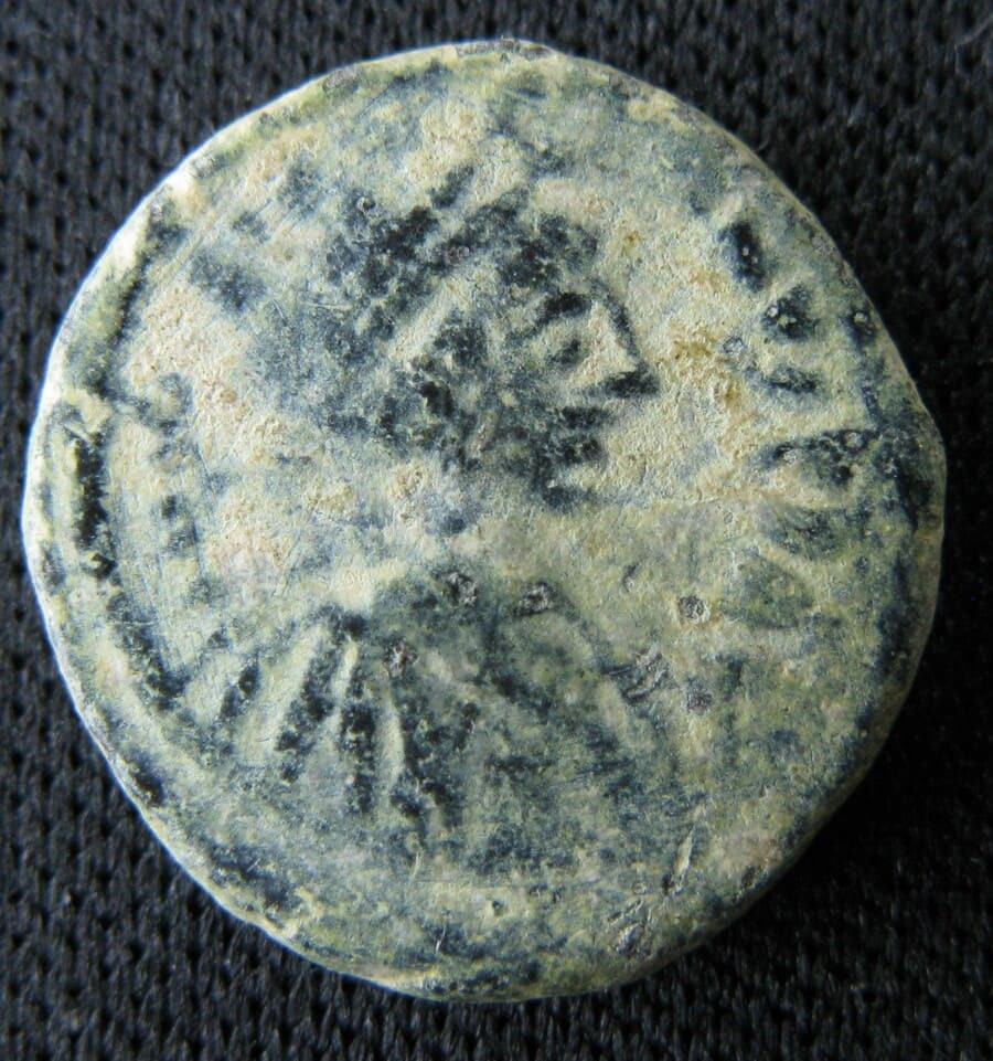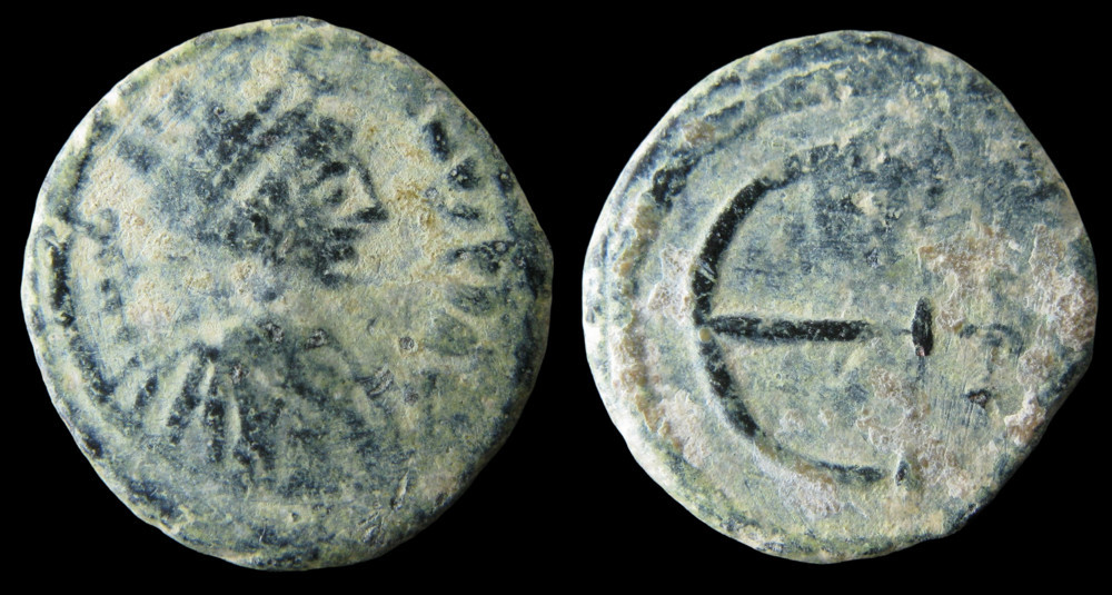 Le pentanoummion — valeur de cinq nummi — représente la plus petite coupure courante du système monétaire byzantin réformé par Anastase Ier en 498 et consolidé sous Justinien Ier. Sa valeur faciale est directement lisible sur le revers : le grand Є grec, chiffre cinq, accompagné d'une croix, constitue à lui seul toute la composition monétaire. Ce dépouillement iconographique contraste avec les grandes coupures (follis, demi-follis) qui affichent des types plus élaborés, et confère à ces petits bronzes une austérité toute fonctionnelle. Cet exemplaire est attribué à la cinquième officine de l'atelier de Constantinople et appartient à l'émission longue frappée entre 543 et la fin du règne (565), ce qui en fait l'un des types les plus tardifs de Justinien dans cette dénomination.
