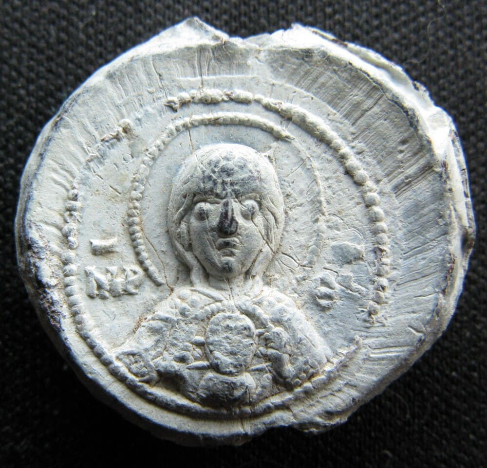 Sceau d'une qualité exceptionnelle, remarquablement conservé tant dans la frappe que dans la définition du relief. Ce type iconographique, associant au droit un buste de la Vierge Théotokos tenant le médaillon du Christ — dit type Nikopoia ou apparenté — connaît une large diffusion dans la production sigillographique byzantine des Xe et XIe siècles. La formule invocatoire Θεοτόκε βοήθει τῷ σῷ δούλῳ…, inscrite au revers, est l'une des plus fréquentes de la sigillographie mésobyzantine ; elle exprime la dévotion mariale du titulaire et place l'acte scellé sous la protection divine.