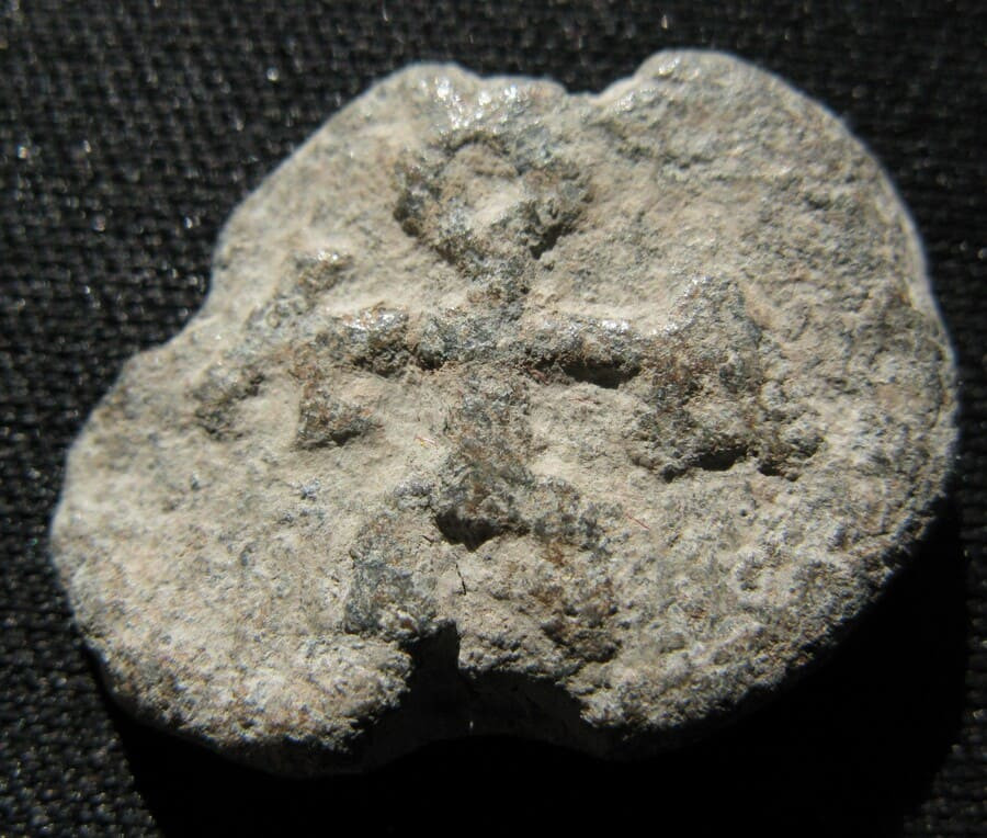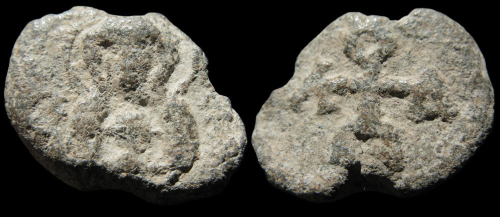 Sceau de conservation médiocre, ce qui explique la difficulté de lecture de certaines lettres du monogramme ; la frappe reste néanmoins lisible et le type identifiable avec assurance. Le droit présente un buste de la Vierge Théotokos tenant un médaillon du Christ, flanqué de croix latérales — formule iconographique attestée dès les premiers temps de la production sigillographique byzantine et qui précède la généralisation des légendes mariales invocatoires propres aux siècles mésobyzantins. La datation au Ve–VIe siècle place ce sceau parmi les exemplaires les plus anciens connus.