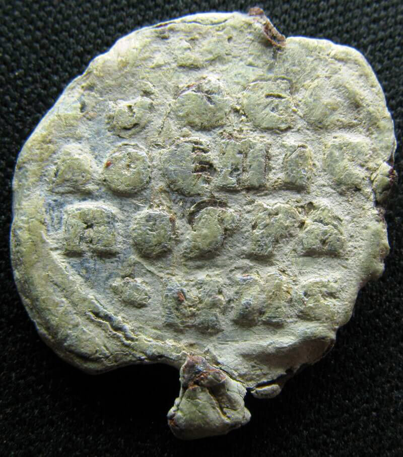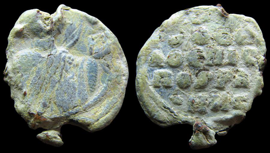 Sceau en plomb au flan irrégulier (18 × 21 mm) et partiellement fragmenté. La frappe en est néanmoins significative sur le plan épigraphique, et la titulature, malgré ses lacunes, permet de proposer une identification plausible du titulaire.
