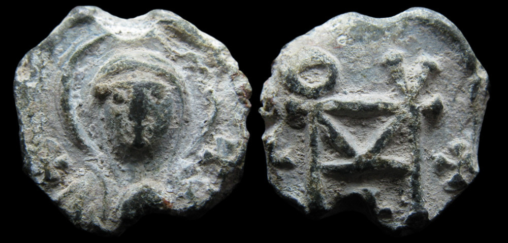 Sceau épiscopal du VIᵉ–VIIᵉ siècle attribuable à un métropolite du nom de Pierre (Πέτρου μητροπολίτου). Le droit présente une iconographie mariale caractéristique de cette période : la Théotokos tenant un médaillon du Christ, encadrée de croix — un type bien attesté dans la sigillographie protobyzantine. Le revers porte un monogramme en bloc construit sur un Π majeur, selon une structure fréquente pour les noms et titres ecclésiastiques de cette époque. Les lettres constitutives — M, H, O/P, V, T et Λ — se combinent pour former la séquence Πέτρου μητροπολίτου. Le Λ, peu visible sous la jambe droite, est un trait récurrent sur ce type de monogramme en bloc. Le rang de métropolite désigne un évêque à la tête d'une province ecclésiastique, jouissant d'une autorité supérieure à celle des simples évêques suffragants. Le nom Pierre, d'une fréquence considérable dans le clergé byzantin, ne permet pas à lui seul d'identifier le titulaire ni de déterminer le siège métropolitain concerné. Ce sceau constitue néanmoins un témoignage significatif de la production sigillographique ecclésiastique du haut Moyen Âge byzantin.