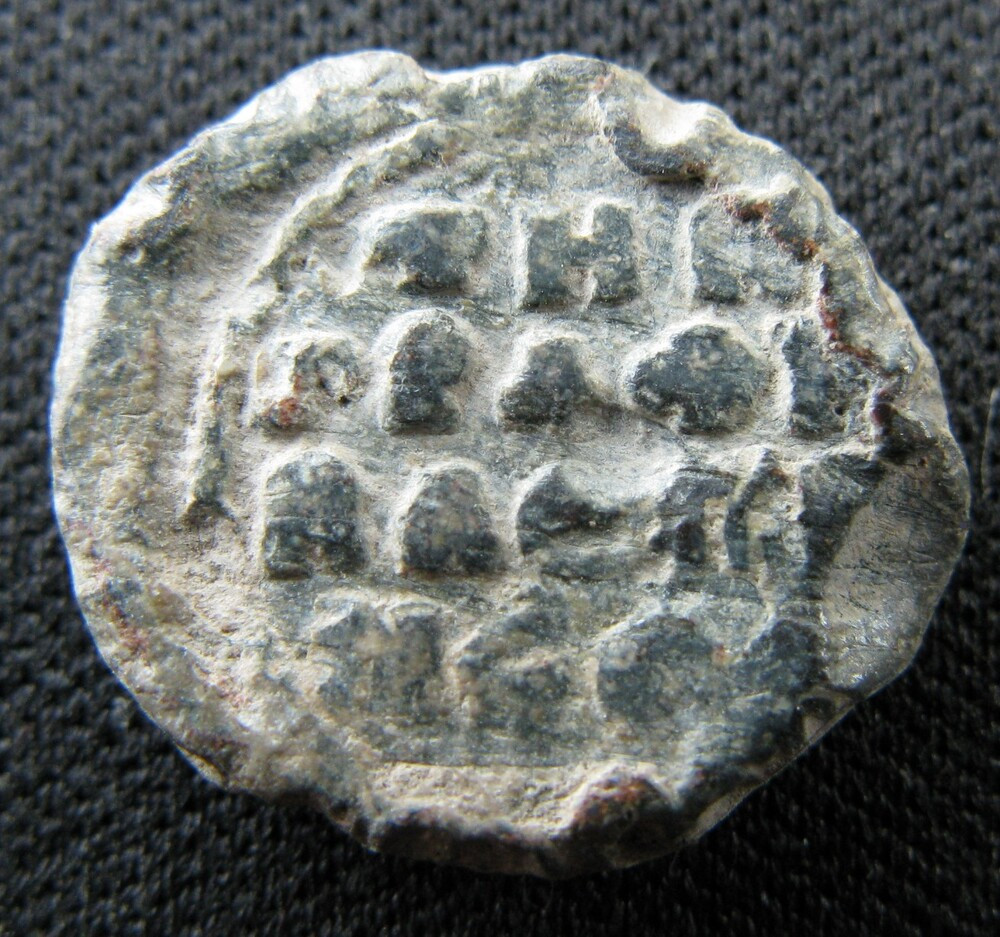Sceau anonyme métrique du XIᵉ siècle portant une légende versifiée répartie sur les deux faces, sans iconographie figurée. L'inscription, disposée sur plusieurs lignes au droit comme au revers, forme un vers complet : οὗ σφραγίς ἠμι τὴν γραφὴν γνώσῃ βλέπων — « Apprends de qui je suis le sceau en regardant l'inscription ». Cette formule auto-référentielle et paradoxale invite le lecteur à identifier le propriétaire par le seul examen de l'objet, tout en préservant son anonymat. Il s'agit d'une forme classique des légendes métriques anonymes byzantines. Sur le revers, quelques lettres sont restituées entre crochets ([γ] et [ν γ]), indiquant de légères lacunes dues à l'usure du flan. La forme ἠμι pour εἰμι constitue un iotacisme courant dans le grec médiéval. Cette pièce appartient au groupe catalogué par Wassiliou-Seibt dans son corpus des sceaux à légendes métriques et correspond au type 1696.