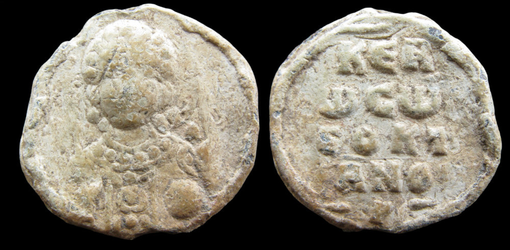 Sceau du IXe siècle au type iconographique et invocatif caractéristique de la période mésobyzantine.