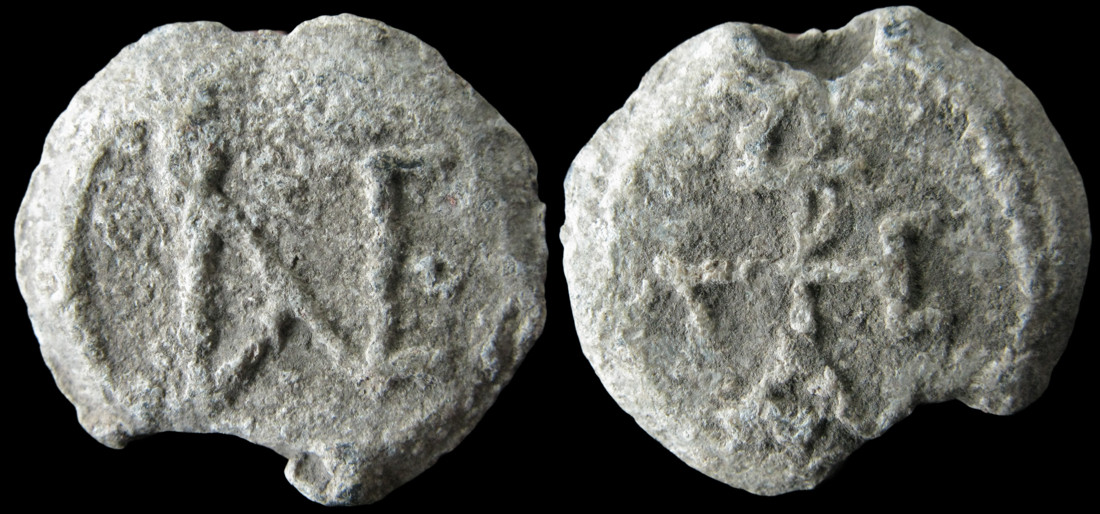 Sceau byzantin du VIIᵉ siècle portant un monogramme bloc au droit et un monogramme cruciforme de dignité au revers.