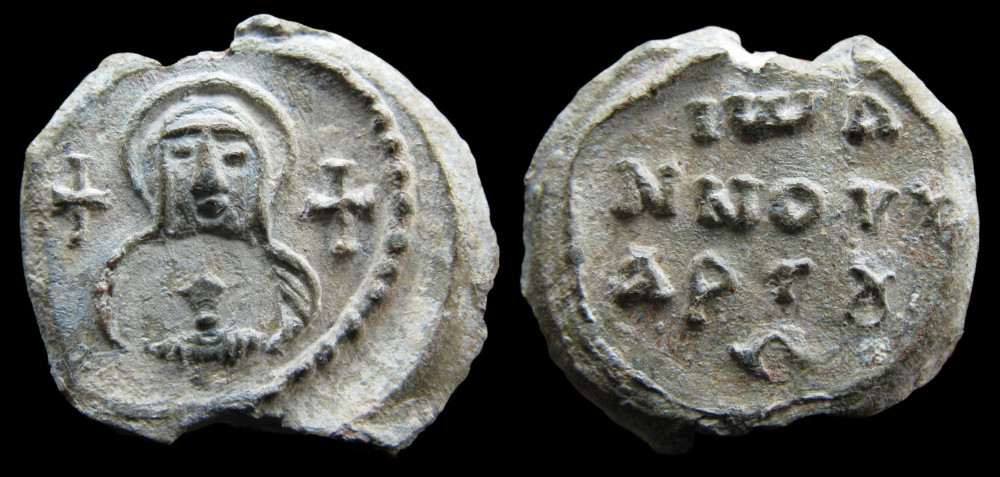 La légende du revers identifie le propriétaire comme Jean (Ἰωάννου), chartulaire (χαρτουλάριος). Le chartulaire est un fonctionnaire chargé de la tenue des registres et des archives au sein de l'administration civile, militaire ou ecclésiastique byzantine. Ce titre, très répandu dans la bureaucratie impériale, couvre un large spectre de responsabilités allant du secrétariat provincial aux bureaux centraux de Constantinople. Le nom Ἰωάννης, extrêmement fréquent dans la prosopographie byzantine, ne permet pas à lui seul une identification individuelle.