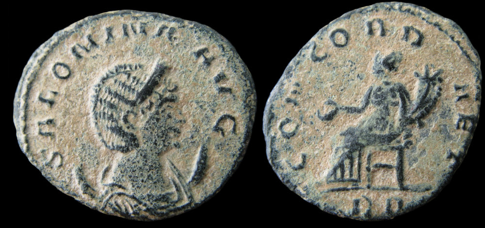 Antoninien frappé à Rome vers 263-264, au cours de la quatrième émission du monnayage de Salonine au nom de Gallien seul. Ce type, référencé MIR 544p, n'est recensé qu'à quinze exemplaires dans le corpus de Robert Göbl — un chiffre confirmé par Webb qui en dénombre seize (W. 6a1). Il s'agit donc d'un monnayage peu courant, qui mérite l'attention des spécialistes du règne de Gallien.