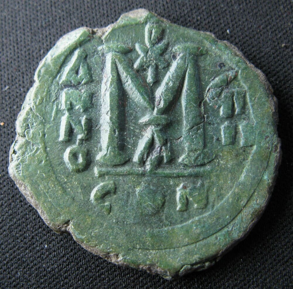 Le revers, purement fonctionnel, affiche la valeur M (40 nummi) conformément à la réforme monétaire d'Anastase Ier de 498, qui avait introduit les grandes marques de valeur sur les bronzes byzantins. Le chrisme surmontant le M rappelle la dimension chrétienne du pouvoir impérial. L'indication ANNO suivie de l'année de règne en chiffres grecs permet de dater précisément chaque émission — un système de datation systématique qui fait des folles byzantins un outil chronologique de premier ordre pour les numismates et les historiens.