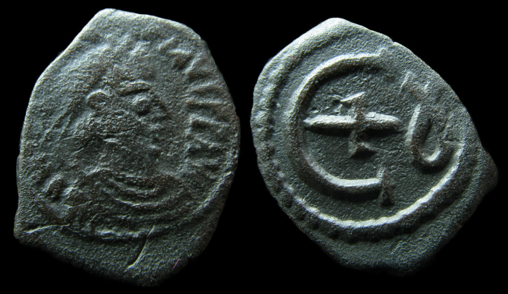 L'atelier de Théoupolis, troisième atelier de l'empire après Constantinople et Nicomédie, produisait un monnayage abondant et de style souvent distinct, reconnaissable à ses portraits plus schématiques et à ses monogrammes caractéristiques. Le pentanoummion, en raison de son petit module et de sa faible valeur faciale, a généralement beaucoup circulé et se rencontre rarement dans un état de conservation aussi satisfaisant que le présent exemplaire.