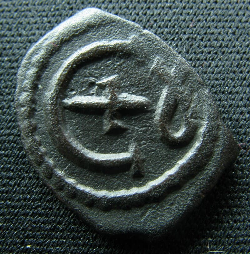 Grand E croiseté (= 5 nummi) ; monogramme (boucle).